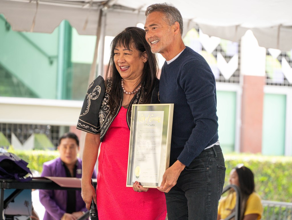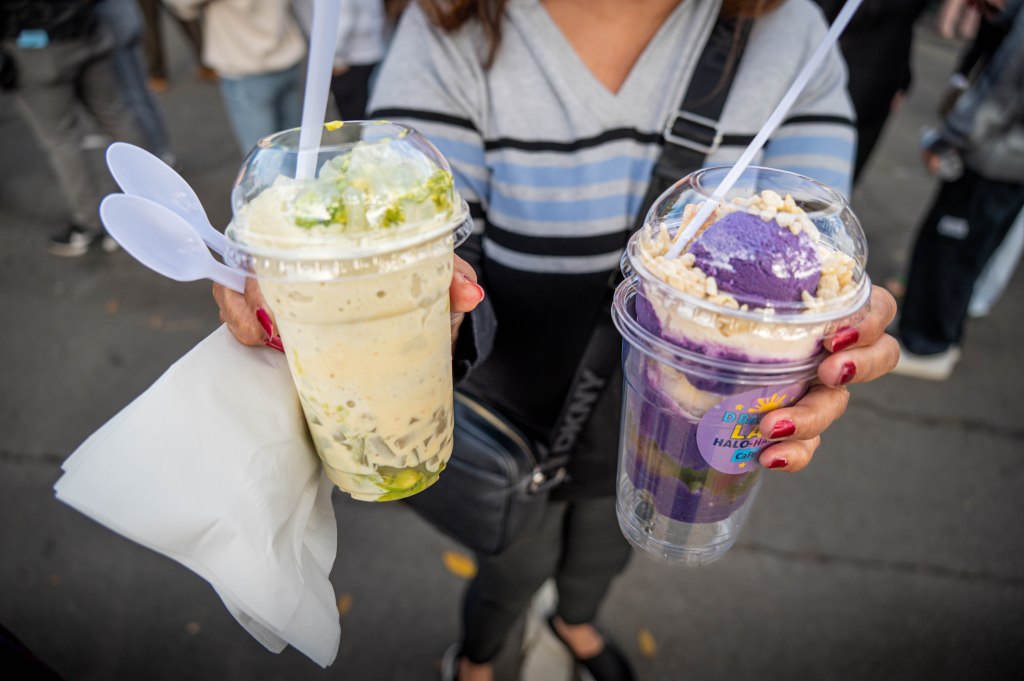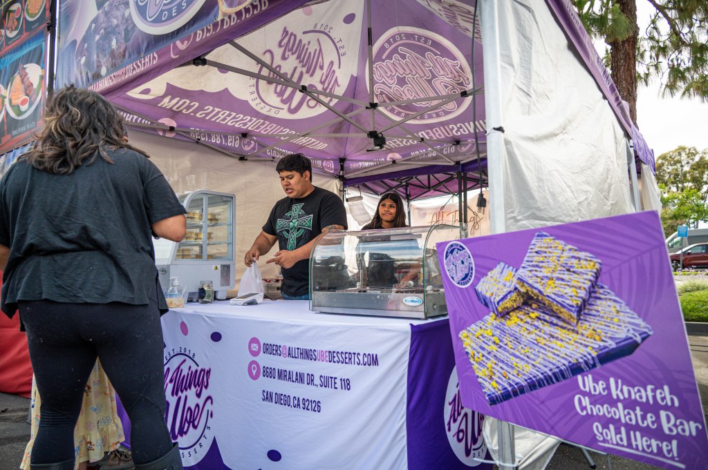 One of the many vendors at the Ube Fest on Sunday was Mano Po where they served traditional Manila Barbecue Chicken. Mano Po has served at Camp Flog Gnaw at Dodger Stadium last November and will be attending Coachella the following weekend. Rehansa Kulatilleke | Long Beach CurrentOwners of Prime Care USA, Jules Graeser (left) and newly elected Mayor of Cerritos Lynda Johnson celebrates the community brought together through Ube Fest. Graeser, being one of the hosts also sang to the guest during the begining of the event festivities. Rehansa Kulatilleke | Long Beach CurrentNewly elected Mayor of Cerritos Lynda Johnson (left) and actor and martial artist, Mark Dacascos celebrate his recognition for his works in martial arts. Dacascos has been in shows such as Hawaii 5-0, Agents of Shield and Iron Chef America. Rehansa Kulatilleke | Long Beach CurrentUbe Fest started in October of 2021 by James Oreste in Long Beach which later traveled to places beyond California in places such as Albany, Indianapolis, St. Louis, Chicago and New Jersey. Rehansa Kulatilleke | Long Beach CurrentJeepneys, the public utility vehicles popular in the Philippines were brought to the Ube Fest where many guests took photos inside. Rehansa Kulatilleke | Long Beach CurrentOnCrunch88 was one of the many successful vendors who gained attention from guests who attended the Ube Fest on Sunday selling an array of Thai styled food. OnCrunch88 sold items such as their Signature Crispy garlic and pepper pork belly, Laab crispy pork and Spicy basil. Rehansa Kulatilleke | Long Beach CurrentApart from the many food vendors at the Ube Fest, some vendors like Manila Candle sold an array of candles including their Ube halaya candle. Manila Candle first started their Filipino inspired scented candles in 2019 by part time entrepreneurs and full time nurses. Rehansa Kulatilleke | Long Beach CurrentDifferent from the food vendors, Tori Kanhayuwa brought her Doodle Booth and drew portraits of guests for $10. Kanhayuwa attended both days where she sold out on Sunday before the end of the day. Rehansa Kulatilleke | Long Beach CurrentJeepneys are known as the “King of the Road” for the reilience and community shared after the US military jeeps after World War II. Rehansa Kulatilleke | Long Beach CurrentAll Things Ube were one of the popular vendors who sold an array of ube inspired desserts at the Ube Fest on Sunday. They sold items such as hot pressed ube pandesal ice cream, ube halaya brownies and ubenana pudding. Rehansa Kulatilleke | Long Beach CurrentDough Momma specializes in homemade Filipino pastries including custard ube cake, cheese and ube ensaymada, brazo cupcake and pork BBQ. Rehansa Kulatilleke | Long Beach CurrentTwo of D Baker’s Lab Halo-Halo CaFe includes their classic halo-halo desserts such as the Avocade Dream (left) and OG Supreme in their menu. D Baker’s Lab Halo-Halo CaFe has been attending Ube Fest for two years and will be opening in Carson soon. Rehansa Kulatilleke | Long Beach CurrentIlla Manila were one of the other vendors who sold their products to other guests. They sold new arrivals before it was put up onlne for others to buy. Illa Manila started their business in 2012 selling apparel, accessories and more during the Ube Fest. Rehansa Kulatilleke | Long Beach CurrentUbe Queen and Miss Asia USA from 2019-2021, Diane “Didi” Caneda joined in on the many festivities during the Ube Fest. Caneda focuses on valuing the importance of the Filipino community Rehansa Kulatilleke | Long Beach CurrentMany Filipino songs played in the background during the Ube Fest, helping to create a welcoming community where others get to learn more about the Filipino culture. Rehansa Kulatilleke | Long Beach CurrentLivia Rivero, the founder of Capri+Crue Collective sells an array of permanent jewerly for guests to wear, offering a personal experience at the Ube Fest. Rehansa Kulatilleke | Long Beach Current