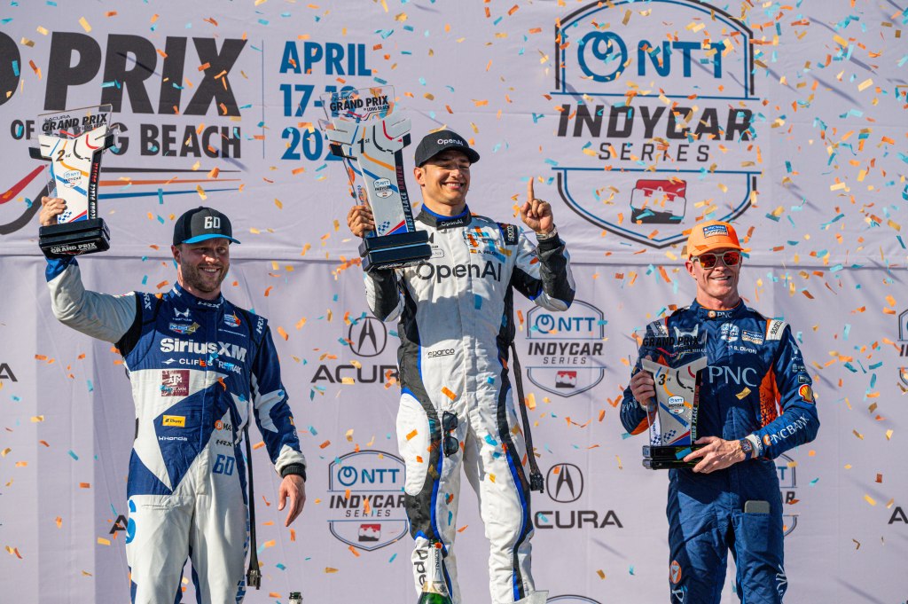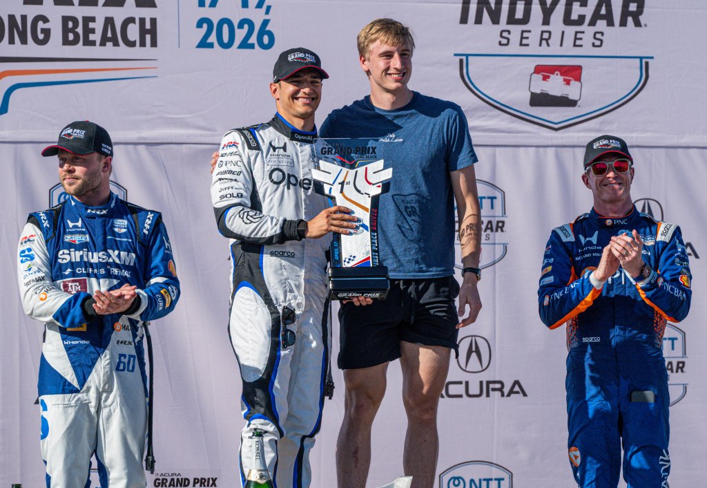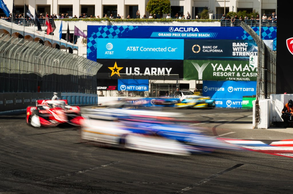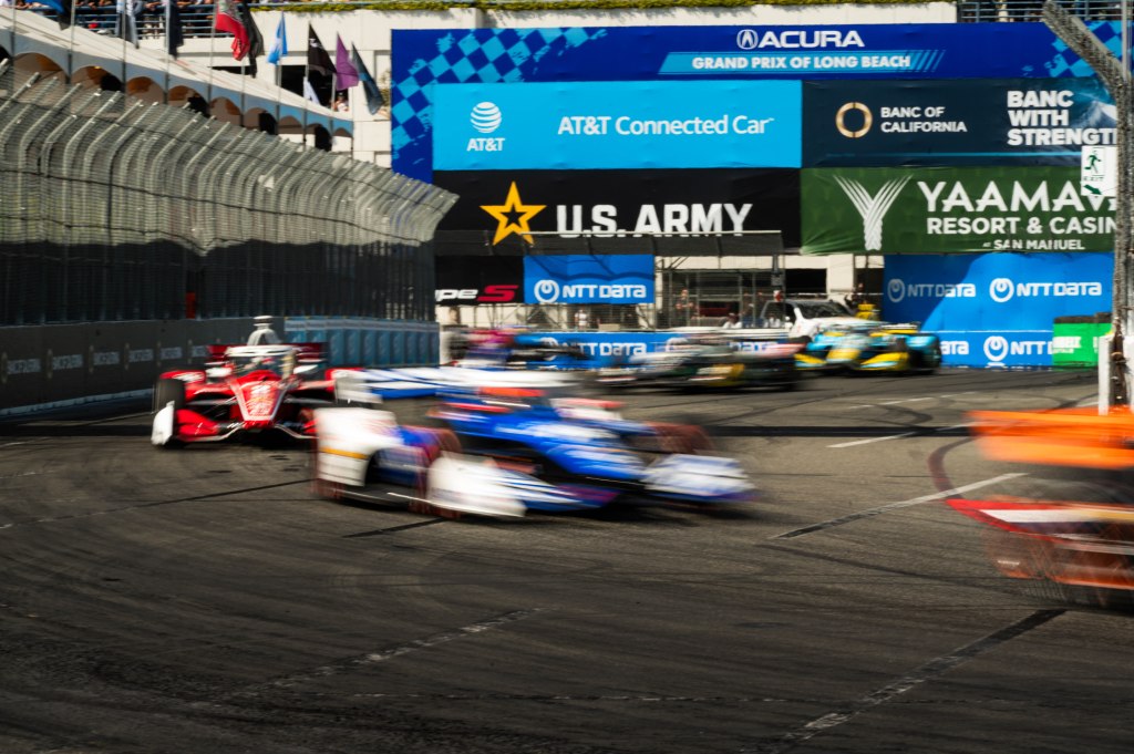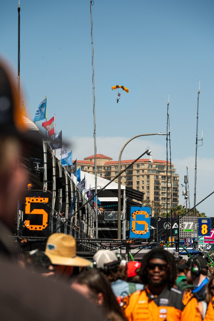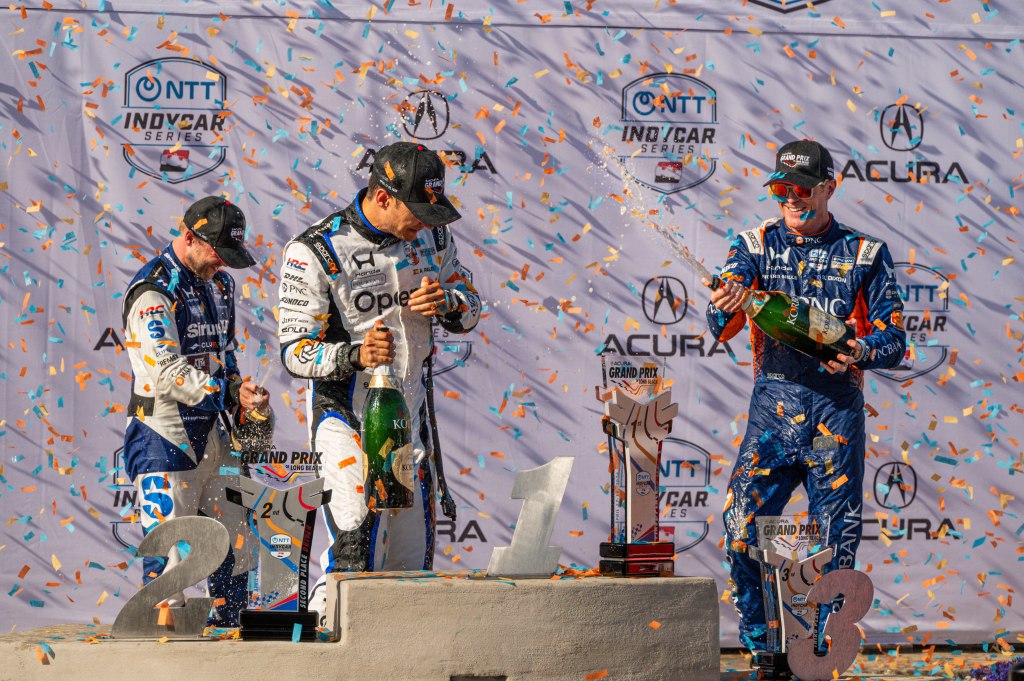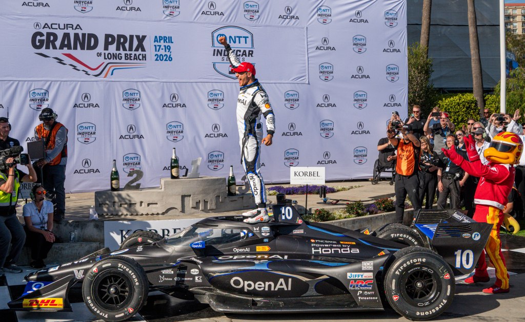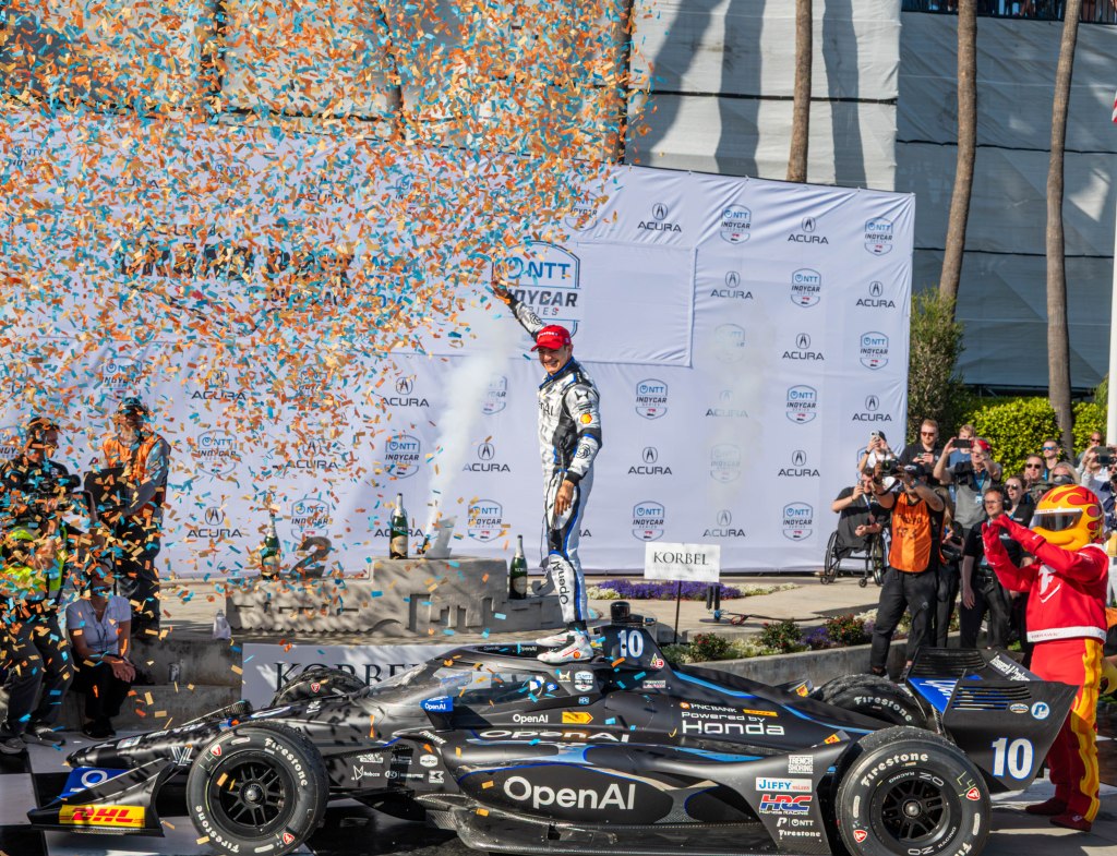 Porche Motorsport North America Selected Driver, Tom Sargent celebrates his win of the Mobil Pro Class for GMG Racing at Victory Lane in the Grand Prix in Long Beach on Sunday, April 19. Rehansa Kulatilleke | Long Beach CurrentHundreds of fans gather near the start/finish line before the final NTT IndyCar Race on Sunday, April 19. Guests were allowed to go on the track for the Pre-Race festivities before the start of the race. Rehansa Kulatilleke | Long Beach CurrentJosef Newgarden joins the Pre-Race festivities before the NTT IndyCar Race on Sunday, April 19 at the Grand Prix in Long Beach. Newgarden ended the race in 14th place at the end of the day. Rehansa Kulatilleke | Long Beach CurrentFirehawk, the mascot for Firestone, gathered near the start/finish line before the final NTT IndyCar Race on Sunday, April 19. Guests were allowed to go on the track during the Pre-Race festivities before the start of the race. Rehansa Kulatilleke | Long Beach CurrentFirehawk, the mascot for Firestone, gathered near the start/finish line before the final NTT IndyCar Race on Sunday, April 19. Guests were allowed to go on the track during the Pre-Race festivities before the start of the race. Rehansa Kulatilleke | Long Beach CurrentOpen AI’s No. 10 driver, Alex Palou, pivots from 9 to turn 10 during the final NTT IndyCar race. Palou placed first at the IndyCar Series at the Grand Prix in Long Beach on Sunday, April 19. Rehansa Kulatilleke | Long Beach CurrentAlex Palou celebrates his win at the Victory Lane after completing the final race during the NTT IndyCar Series at the Grand Prix in Long Beach on Sunday, April 19. Rehansa Kulatilleke | Long Beach CurrentAlex Palou (center) celebrates his win at the Victory Lane at the Grand Prix in Long Beach after completing the final lap of the NTT IndyCar Series. Felix Rosenqvist (left) placed second and Scott Dixon (right) placed third. Rehansa Kulatilleke | Long Beach Current