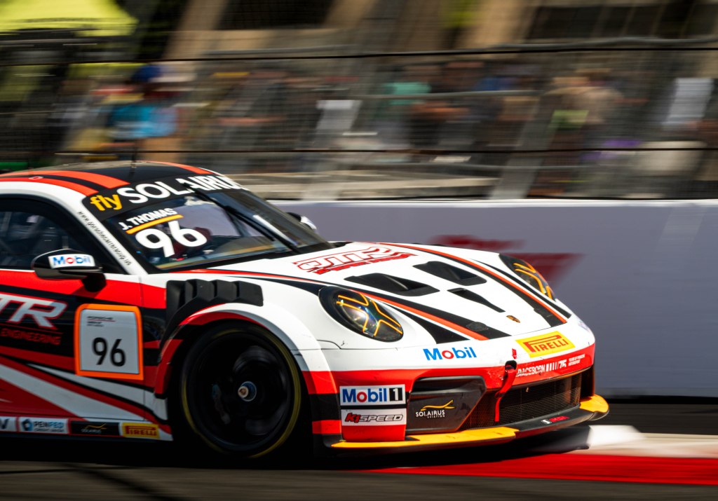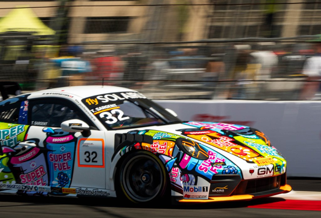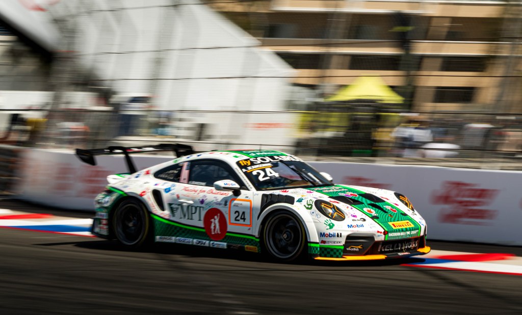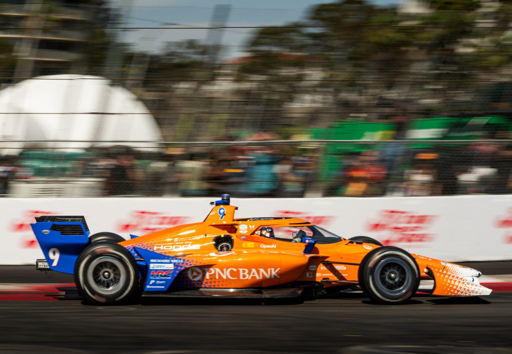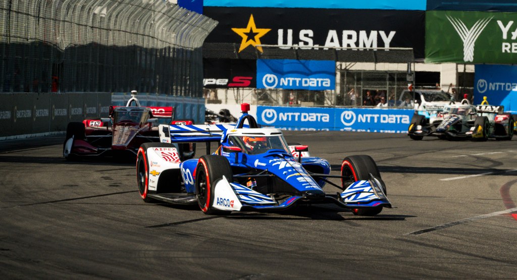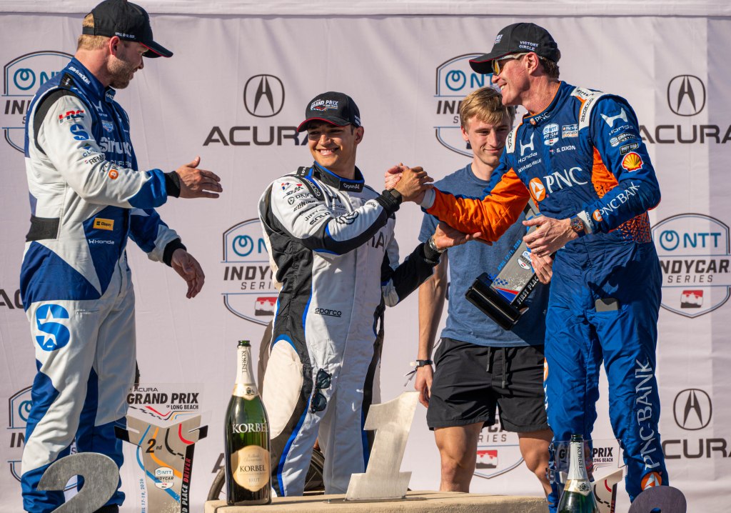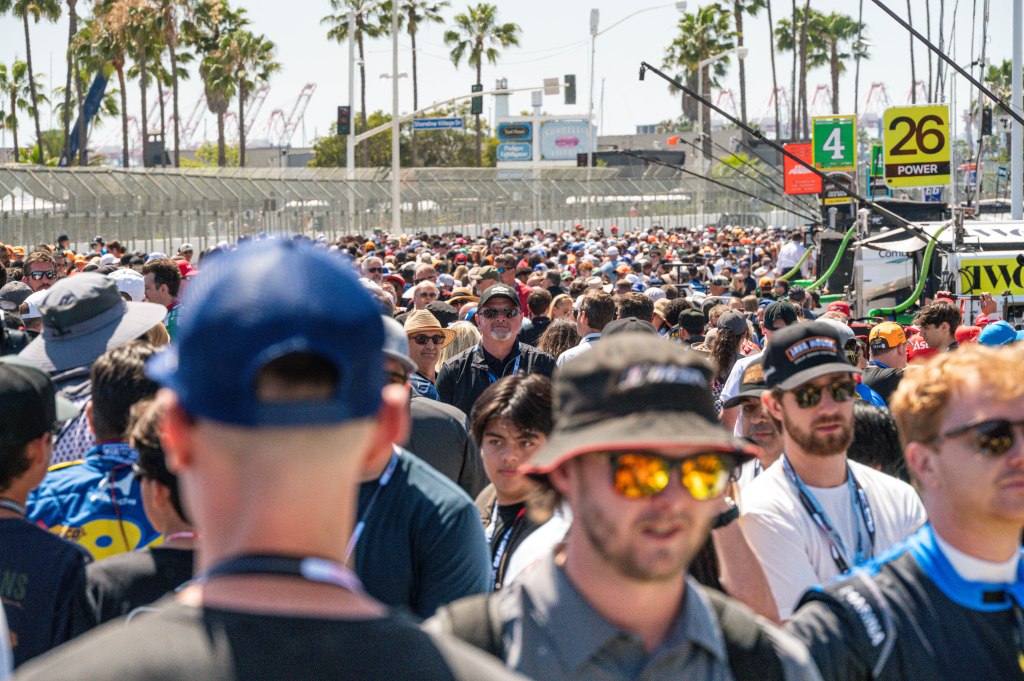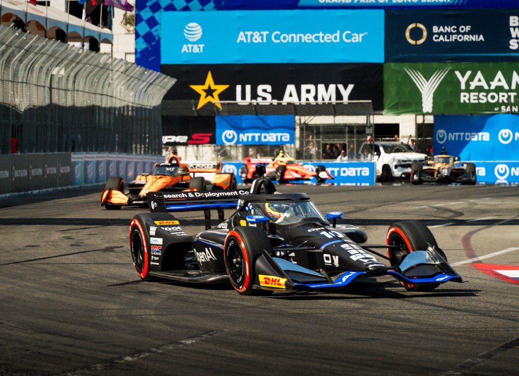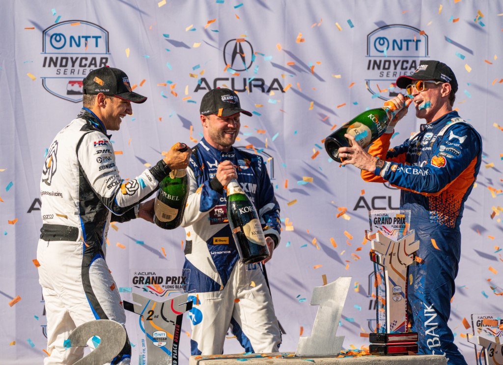Porche Motorsport North America Selected Driver, Tom Sargent celebrates his win of the Mobil Pro Class for GMG Racing at Victory Lane in the Grand Prix in Long Beach on Sunday, April 19. Rehansa Kulatilleke | Long Beach CurrentHundreds of fans gather near the start/finish line before the final NTT IndyCar Race on Sunday, April 19. Guests were allowed to go on the track for the Pre-Race festivities before the start of the race. Rehansa Kulatilleke | Long Beach CurrentJosef Newgarden joins the Pre-Race festivities before the NTT IndyCar Race on Sunday, April 19 at the Grand Prix in Long Beach. Newgarden ended the race in 14th place at the end of the day. Rehansa Kulatilleke | Long Beach CurrentFirehawk, the mascot for Firestone, gathered near the start/finish line before the final NTT IndyCar Race on Sunday, April 19. Guests were allowed to go on the track during the Pre-Race festivities before the start of the race. Rehansa Kulatilleke | Long Beach CurrentFirehawk, the mascot for Firestone, gathered near the start/finish line before the final NTT IndyCar Race on Sunday, April 19. Guests were allowed to go on the track during the Pre-Race festivities before the start of the race. Rehansa Kulatilleke | Long Beach CurrentOpen AI’s No. 10 driver, Alex Palou, pivots from 9 to turn 10 during the final NTT IndyCar race. Palou placed first at the IndyCar Series at the Grand Prix in Long Beach on Sunday, April 19. Rehansa Kulatilleke | Long Beach CurrentAlex Palou celebrates his win at the Victory Lane after completing the final race during the NTT IndyCar Series at the Grand Prix in Long Beach on Sunday, April 19. Rehansa Kulatilleke | Long Beach CurrentAlex Palou (center) celebrates his win at the Victory Lane at the Grand Prix in Long Beach after completing the final lap of the NTT IndyCar Series. Felix Rosenqvist (left) placed second and Scott Dixon (right) placed third. Rehansa Kulatilleke | Long Beach Current